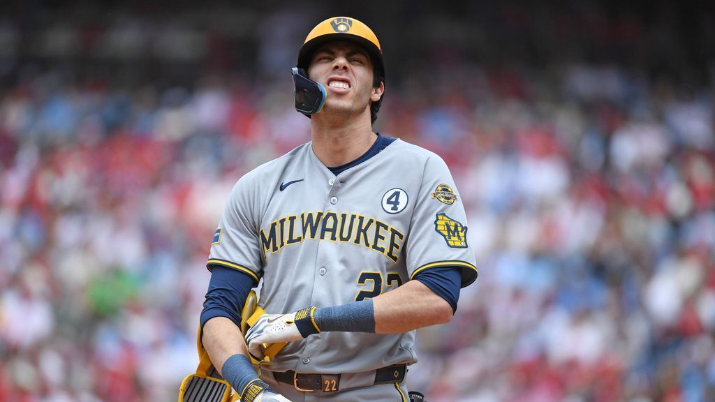 Yelich was hit by a 90 mph sinker from Ranger Suarez. He remained in the game but was lifted for pinch hitter Eric Haase in the third.
